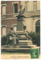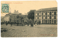 On peut apercevoir le beffroi en arrière-plan.Date : 1907Type : Image, Image fixe, DessinMots‑clés : Maréchal Mortier, Monuments, Carte postale allemande -