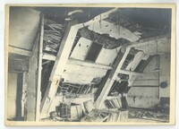 Une partie intérieur de la salle des fêtes endommagée lors de la libération de 1918.Créateur : Photographies Touly,4, Cité Magenta, Paris XeDate : 1918/1919Type : Image, Image fixe, PhotographieMots‑clés : Destructions, Première Guerre mondiale, Dommages de guerre : 1918, photographies Touly, Carte postale allemande -