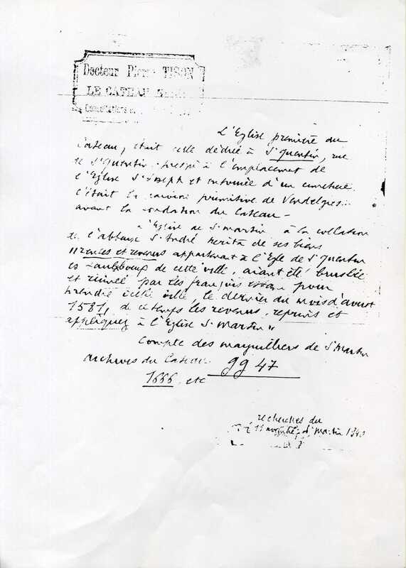 Note du Dr Tison relative à l'église primitive du Cateau