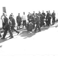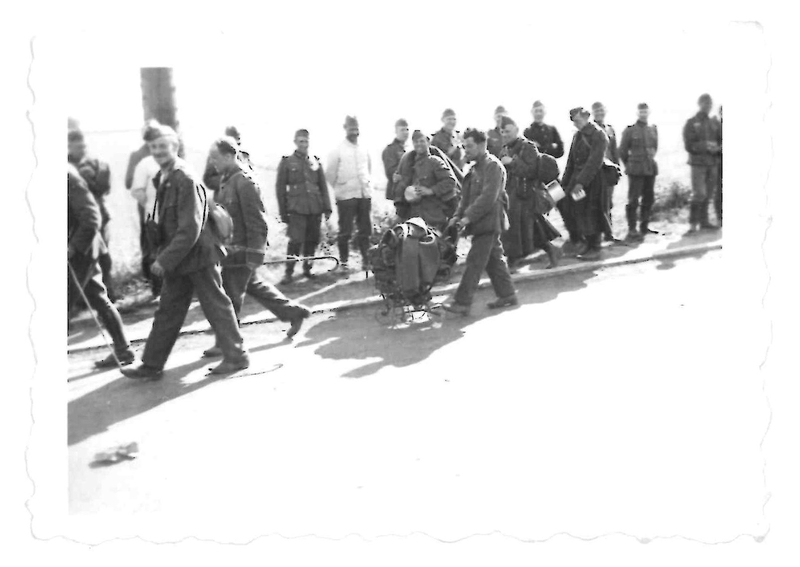 Prisonniers maghrébins entourés de soldats allemands hilares en mai 1940