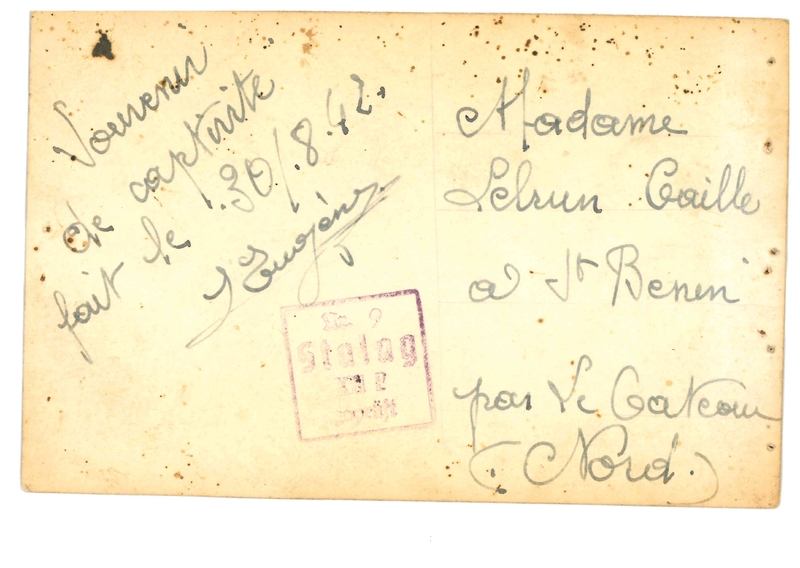 Mentions manuscrites au verso de la carte postale tamponnées par le Stalag.