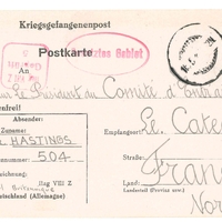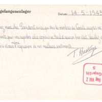 Remerciement d'un interné Britannique adressé au Président du Comité d'Entraide du Cateau pour l'aide apportée.