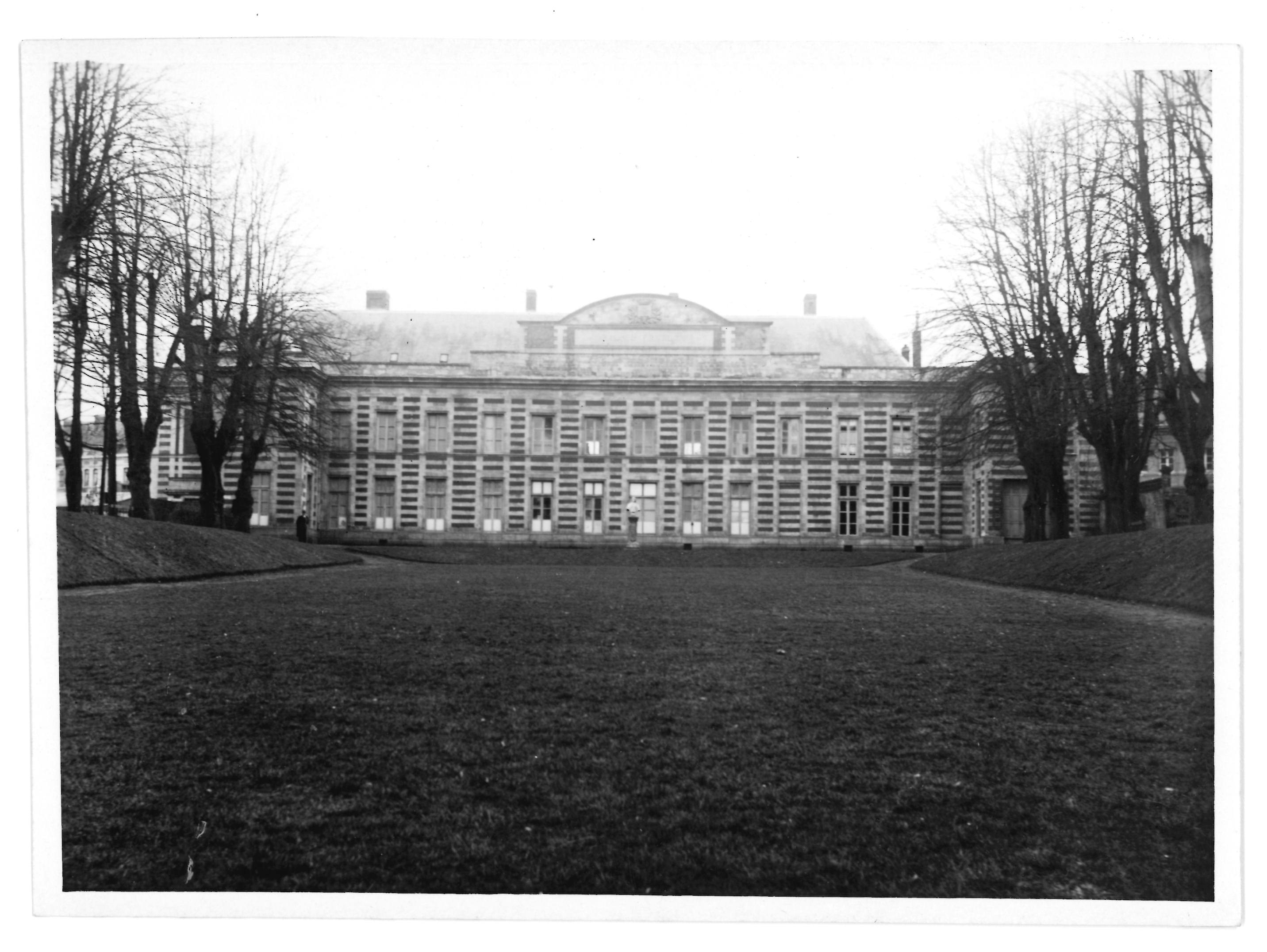 Façade arrière et jardin du Palais Fénelon pendant l'Occupation au Cateau en 1944