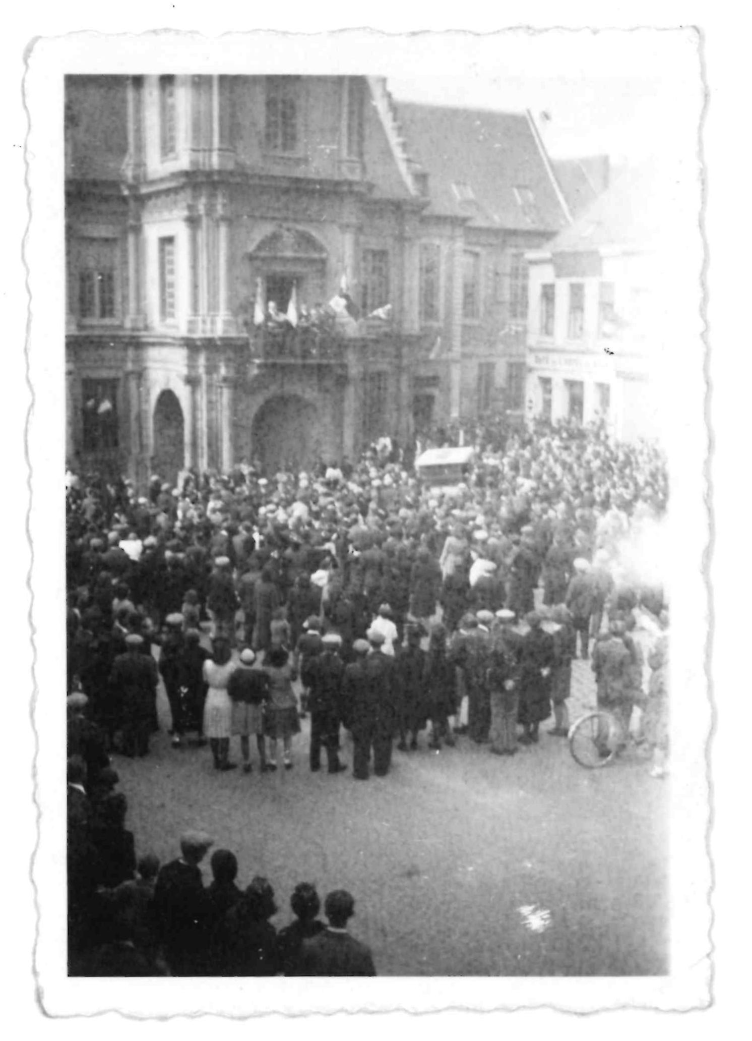Rassemblement à l'hôtel de ville lors de la libération du Cateau en 1944