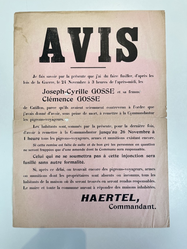 Avis d'exécution du 24 novembre 1914 de la famille Gosse