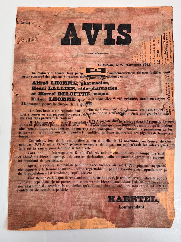 Seconde exécution de détenteurs de pigeons suite à l'interdiction par l'occupant dès le début de l'occupation.