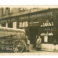 Façace de l'Epicerie Tamboise avec charrette à cheval de livraison au Cateau