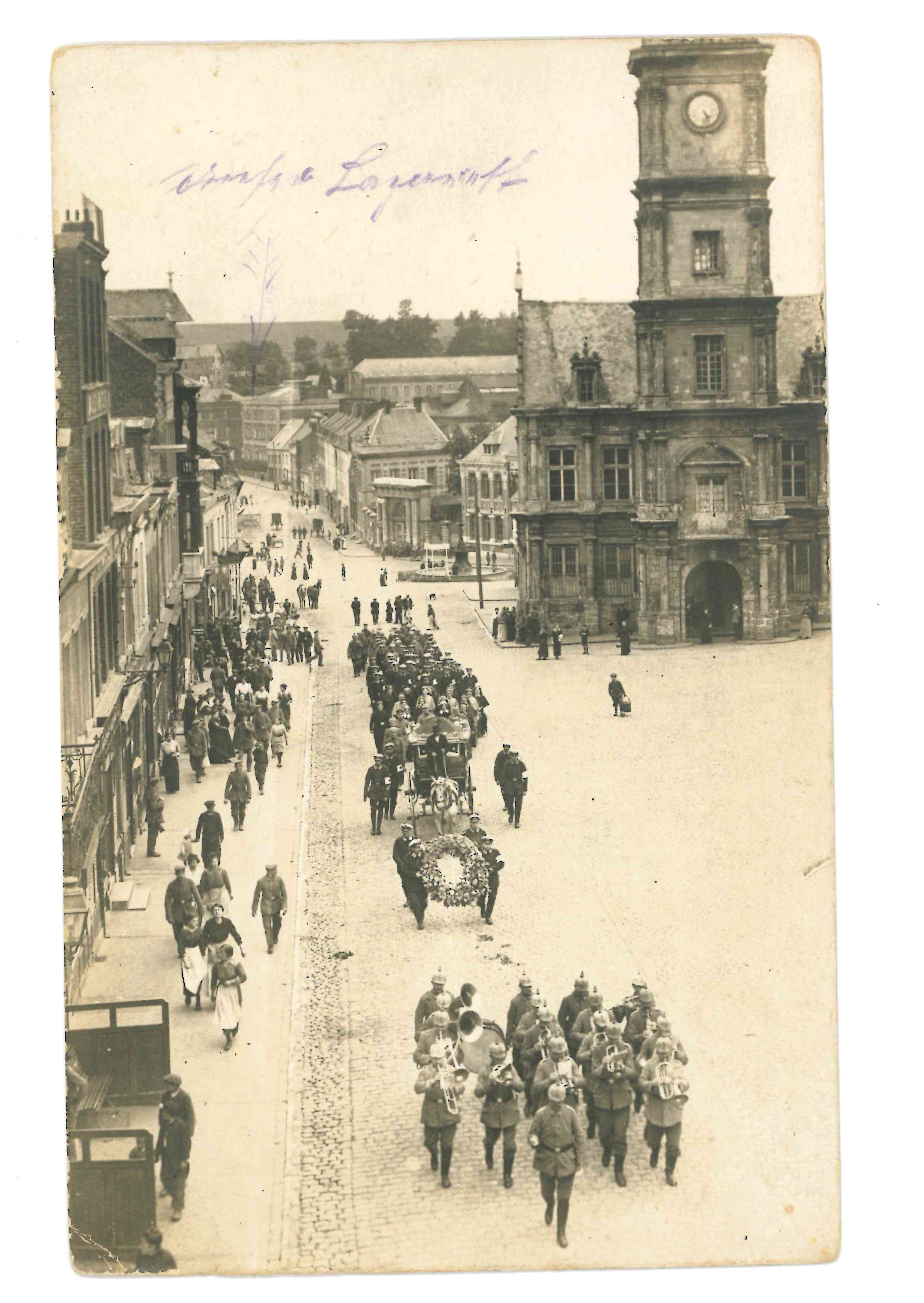 Cortège funéraire allemand au Cateau durant la Première Guerre mondiale