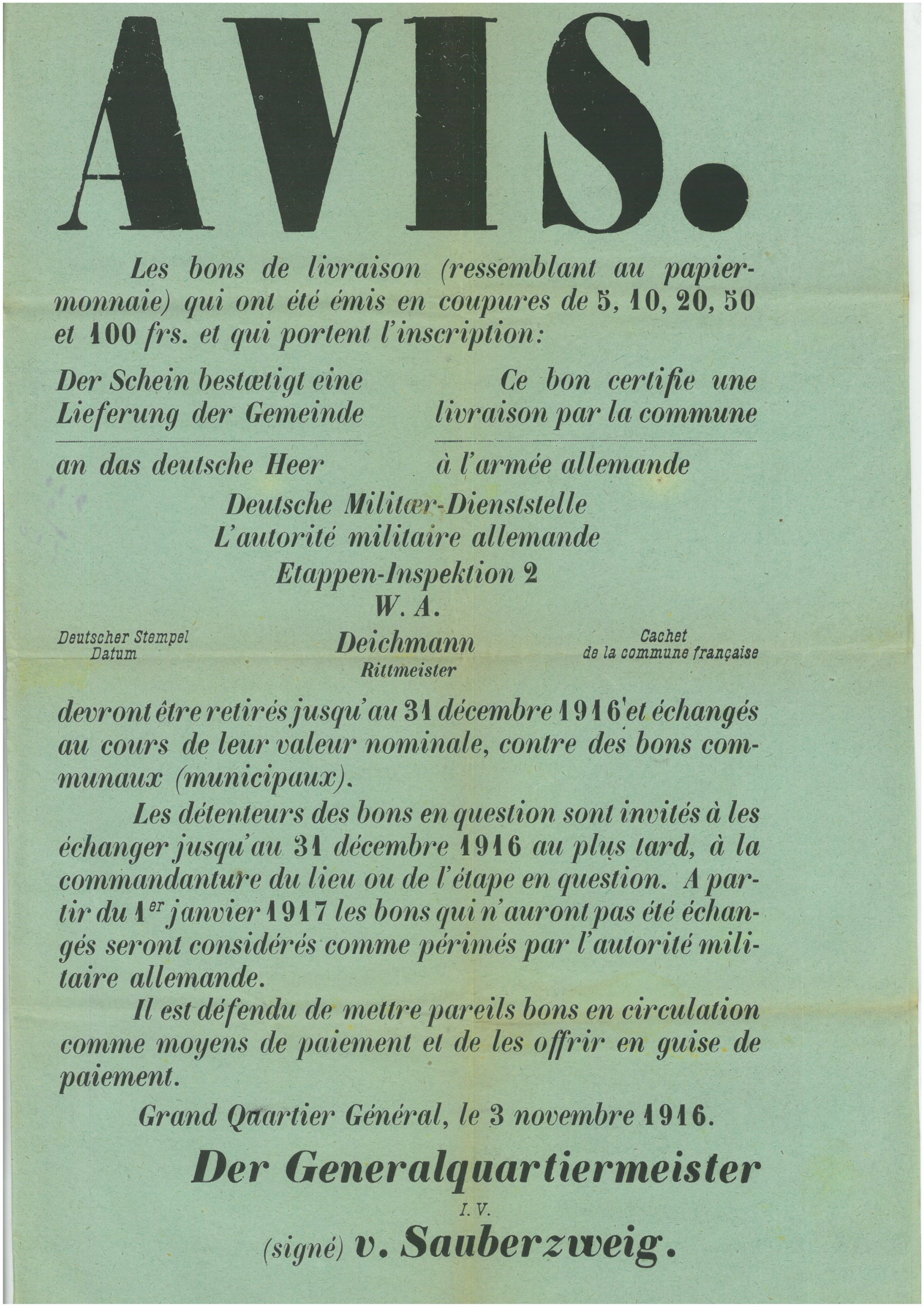 Ordre de la Kommandantur du 3 novembre 1916