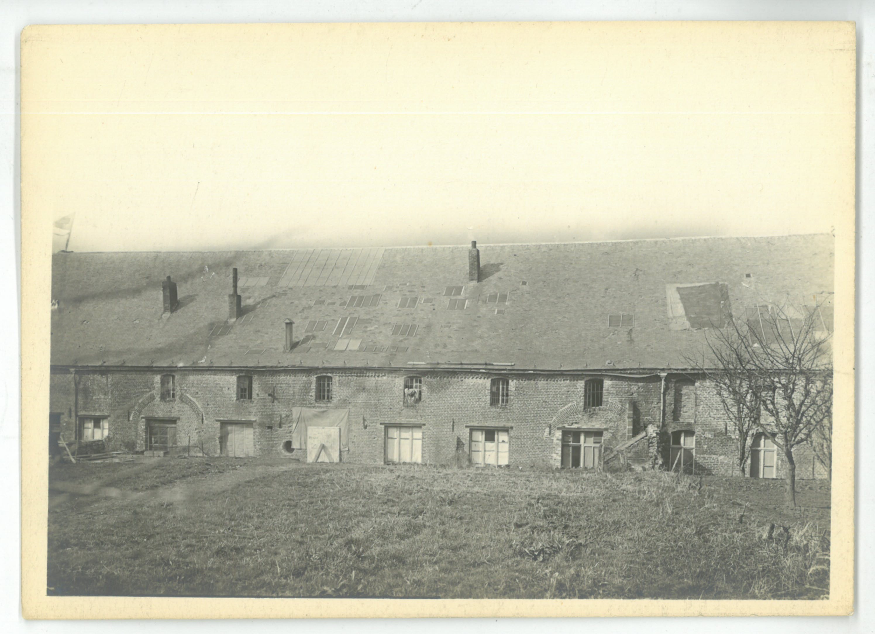 Le refuge des vieillards façade sur cour actuellement parking crèche et garage Ribeiro endommagé lors de la libération 1918.