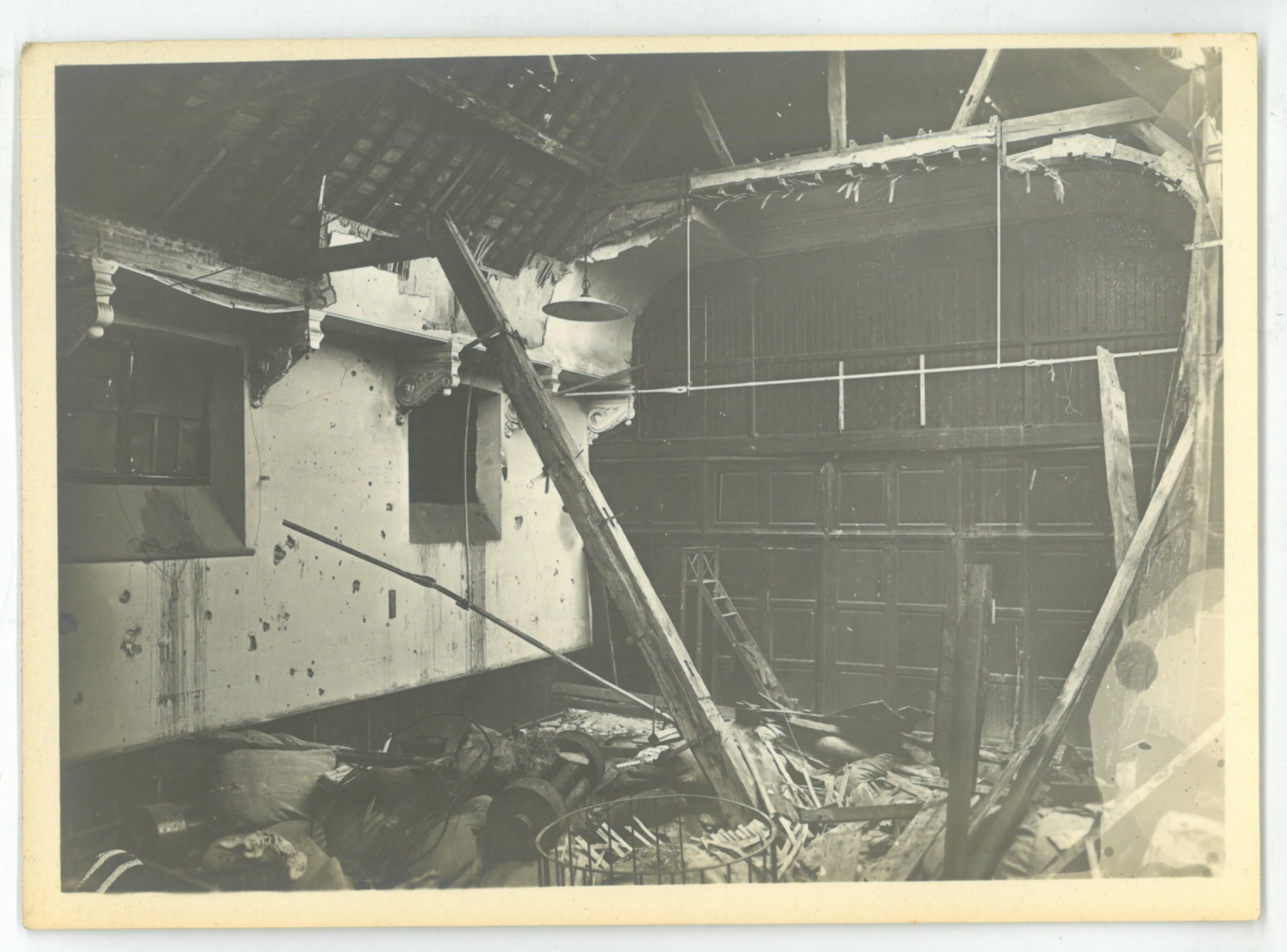 Une salle d'une école maternelle endommagée lors de la libération en 1918.