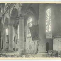 L' intérieur de l'abbatiale Saint-Martin endommagé lors de la libération en 1918.