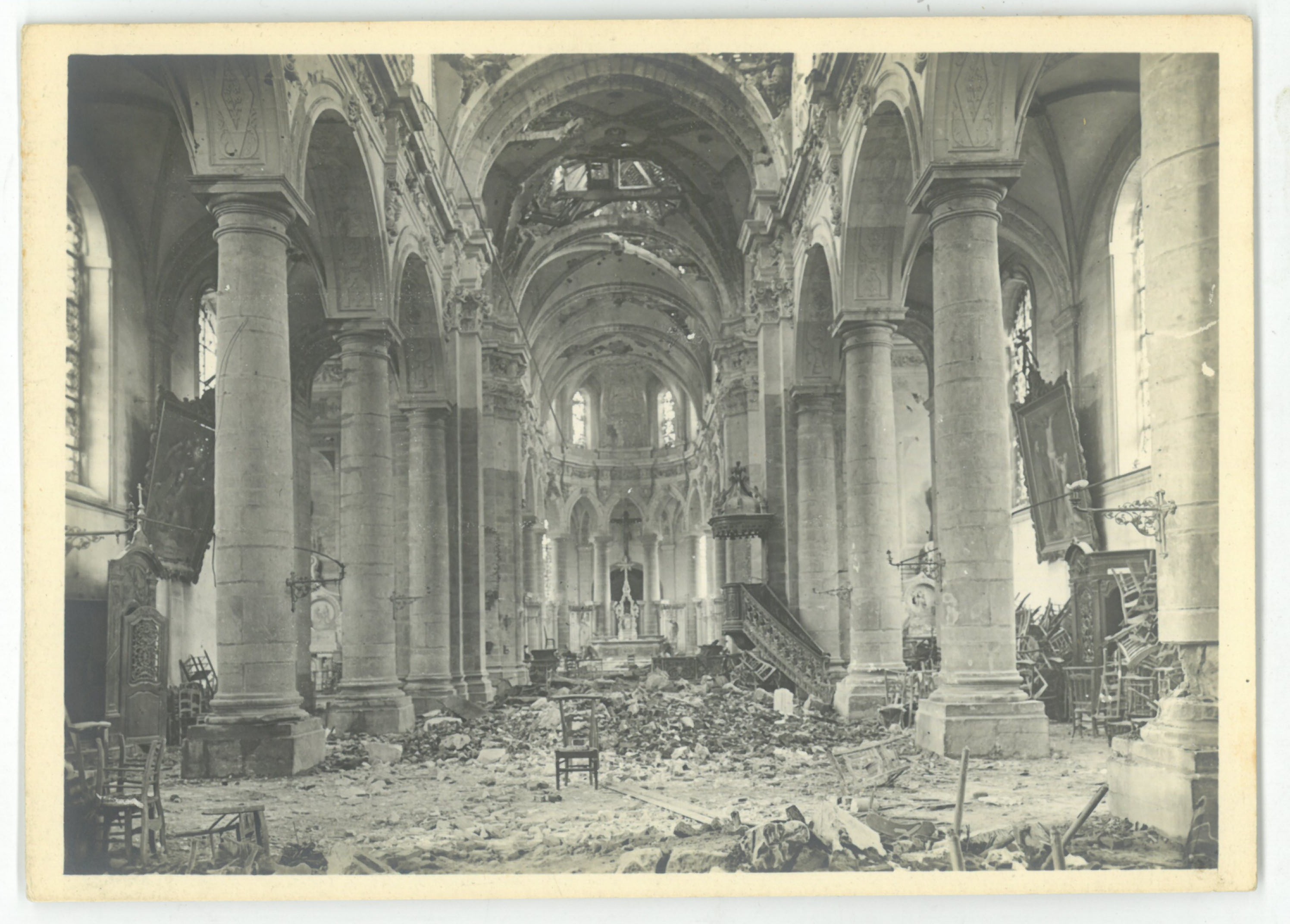 L'intérieur de l'Abbatiale Saint-Martin endommagé en 1918.