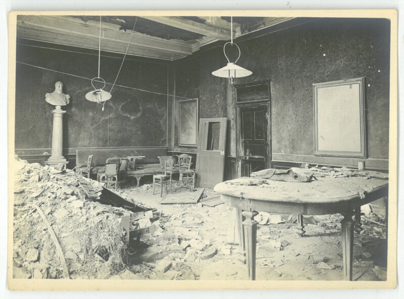 L'intérieur de l’hôtel de ville endommagé lors de la libération en 1918.