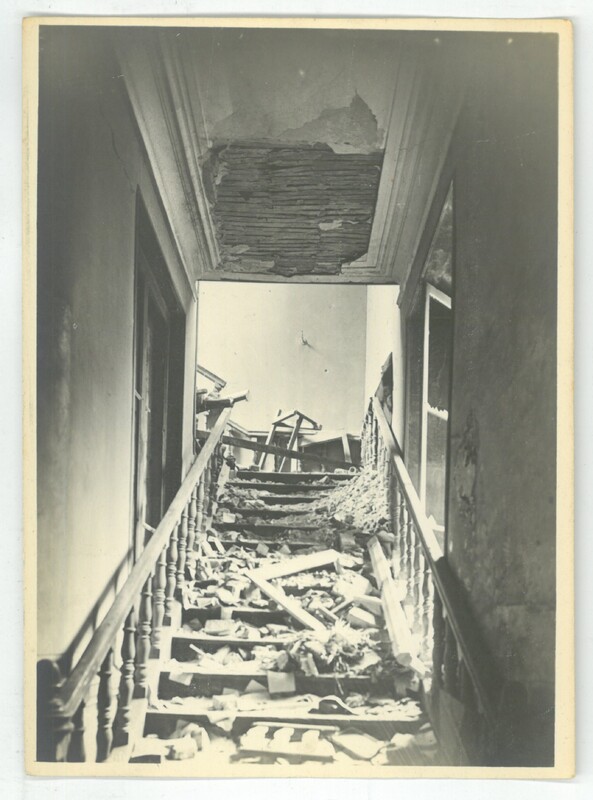 L'escalier qui donne au salon Mortier et à la salle municipal endommagé lors de la libération.