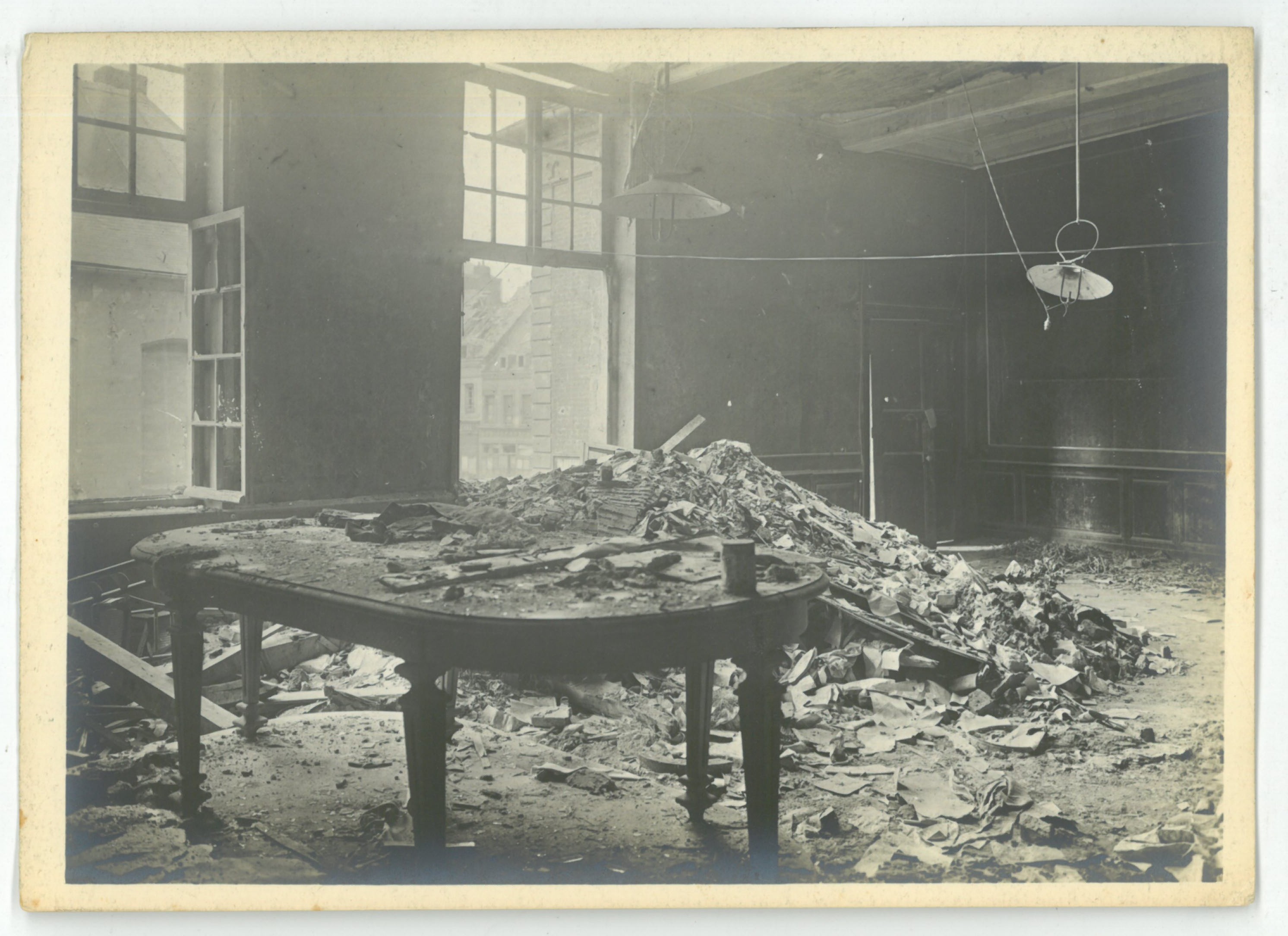 Une salle de l’hôtel de ville situé rue Victor Hugo endommagée lors de la libération de 1918.