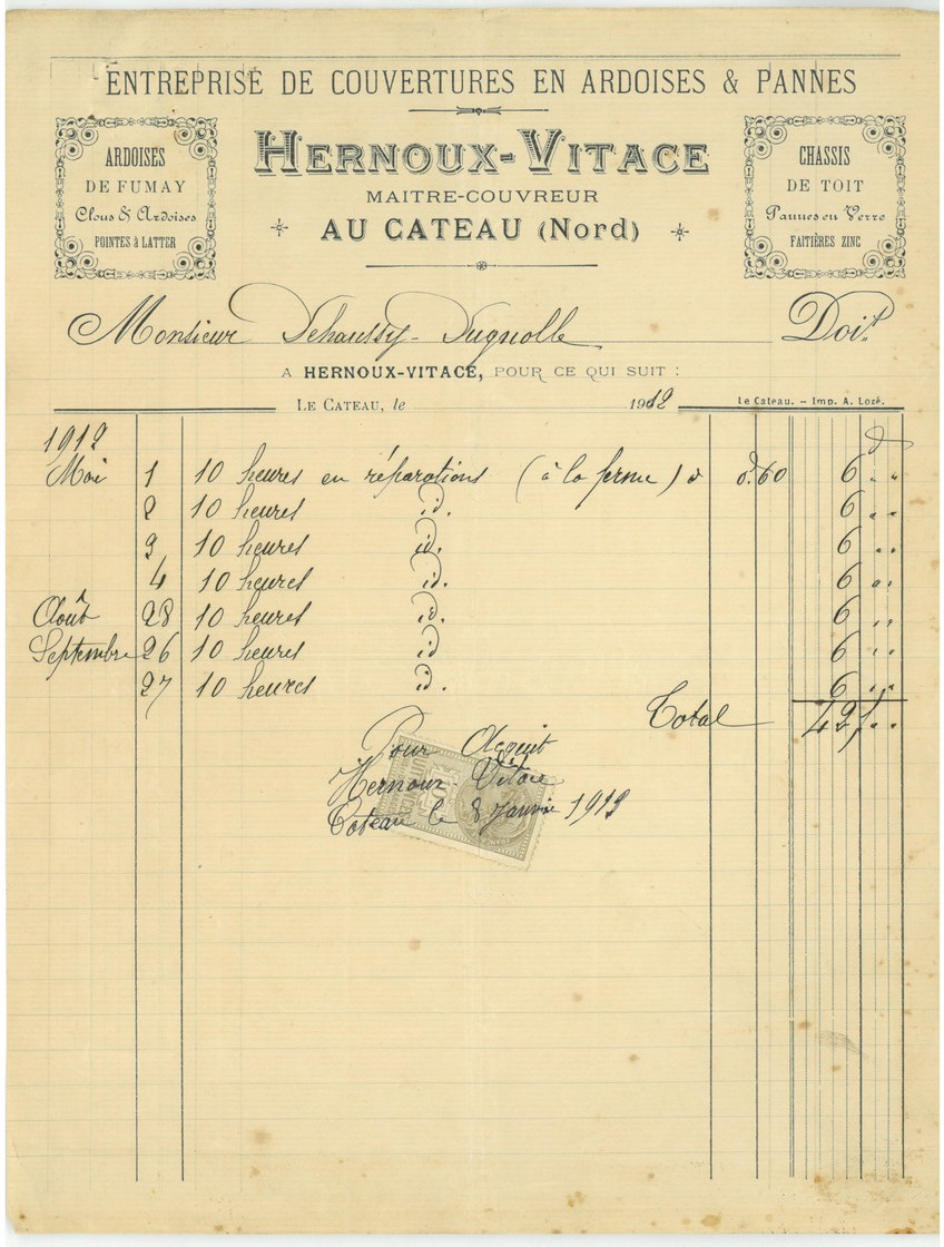 Facture à entête Hernoux-Vitage