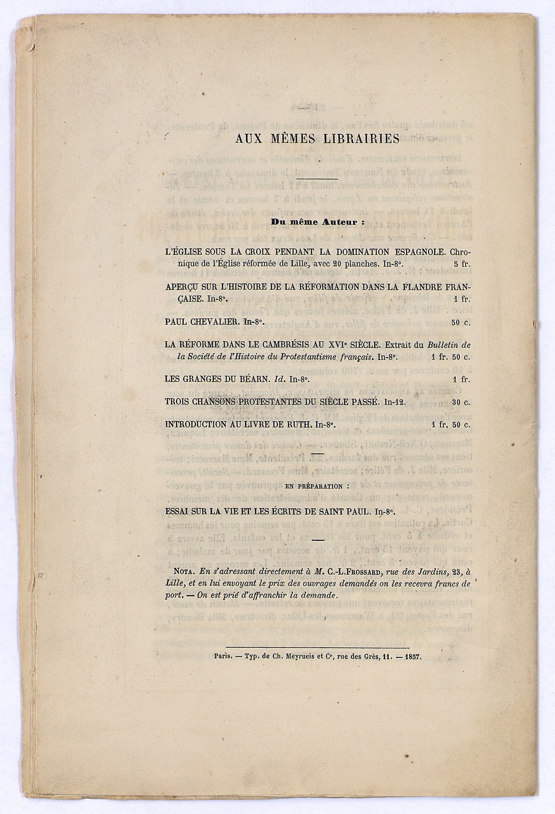 Aperçu sur l'histoire de la réformation dans la Flandre française