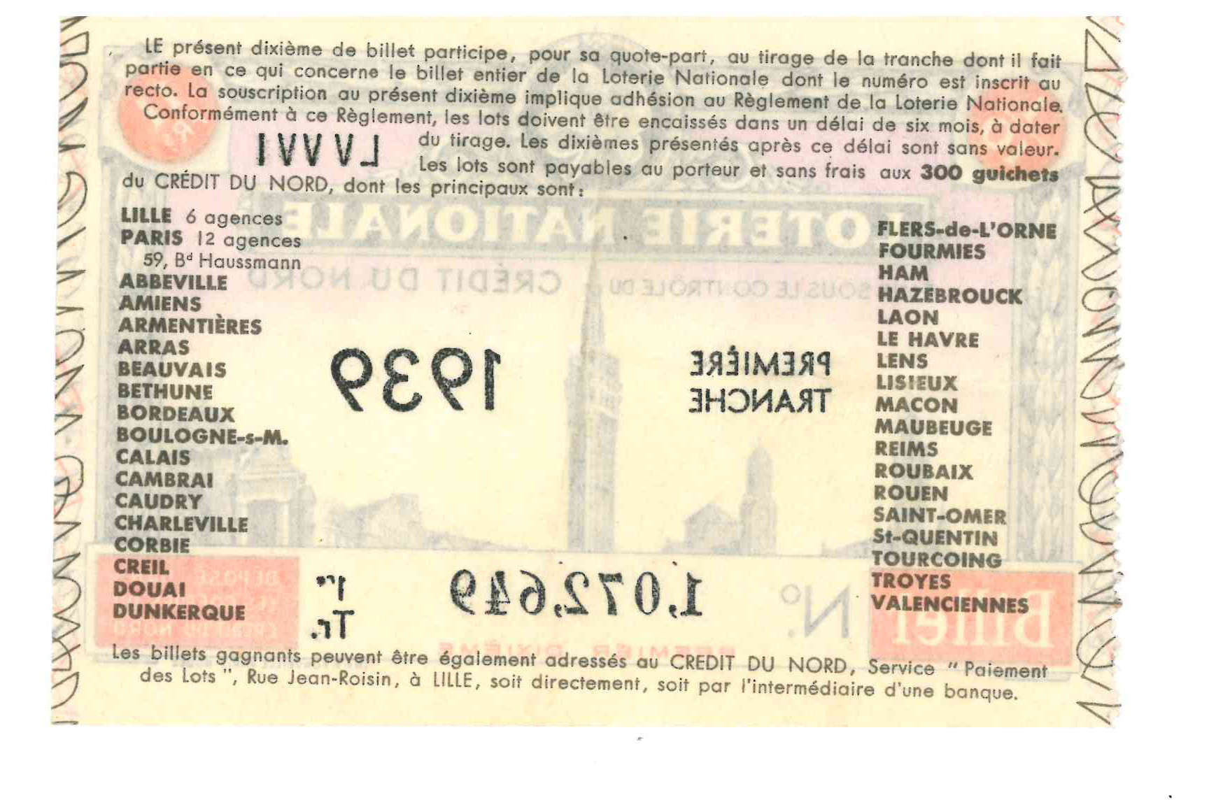 Billet de la loterie nationale datant de 1939