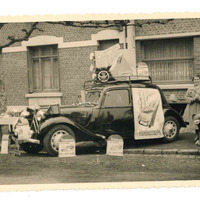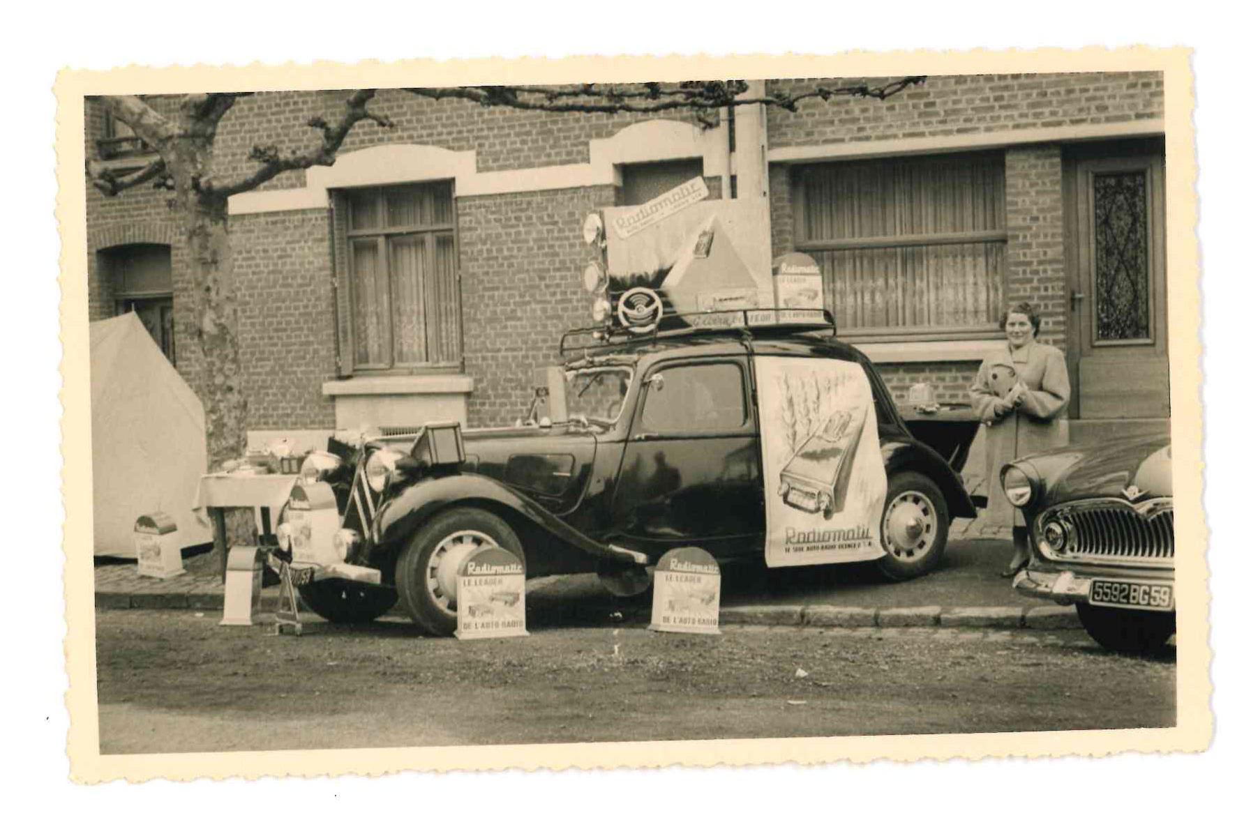 Voiture 'Radiomatic' exposée lors d'un rallye international en 1935 avec Mme. ?