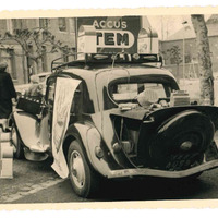 Vue arrière, sur la sono., d'une voiture 'Radiomatic' exposée lors d'un rallye international en 1935