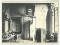L'école des filles , la chambre de la directrice endommagée lors de la libération 1918.Créateur : Photographies Touly,4, Cité Magenta, Paris XeDate : 1918/1919Type : Image, Image fixe, PhotographieMots‑clés : Destructions, Première Guerre mondiale, Dommages de guerre : 1918, photographies Touly, Carte postale allemande -