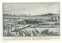 Coupure de presse avec gravure représentant des soldats néo-zélandais avançant vers Le Cateau (11 octobre 1918)Date : 1918-10-11Type : Document d'expositionMots‑clés : Bataille du Cateau (1918), Première Guerre mondiale, Carte postale allemande