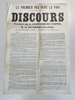 Discours du chancelier M. de Bethmann-Hollweg concernant la situation de l'Allemagne en 1916 en pleine Première Guerre mondiale.Date : 1916-12-12Type : Texte impriméMots‑clés : Occupation, Politique, Première Guerre mondiale, Société, Carte postale allemande -