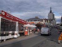 Foire Saint-Matthieu lors des rénovations du centre ville de 2018, on y voit en premier plan le traditionnel restaurant ambulant Le Petit Bedon.Créateur : Caudron, Jean-MarcType : Image, Image fixe, PhotographieMots‑clés : Foire Saint-Matthieu, Patrimoine bâti, Urbanisme, Festivités, évènements, Carte postale allemande -