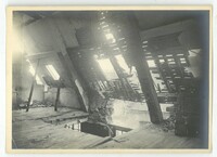 La salle de répétition qui se situe au dernier étage de l’hôtel de ville endommagée lors de la libération 1918.Créateur : Photographies Touly,4, Cité Magenta, Paris XeDate : 1918/1919Type : Image, Image fixe, PhotographieMots‑clés : Destructions, Première Guerre mondiale, Dommages de guerre : 1918, photographies Touly, Carte postale allemande -