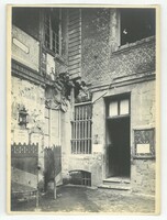 La cour extérieur vue de coté avec des soldats anglais endommagée lors de la libération 1918.Créateur : Photographies Touly,4, Cité Magenta, Paris XeDate : 1918/1919Type : Image, Image fixe, PhotographieMots‑clés : Destructions, Première Guerre mondiale, Dommages de guerre : 1918, photographies Touly, Carte postale allemande -