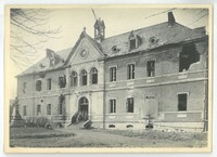 La façade de l’Hôpital Paturle avec devant l'entrée des soldats anglais endommagé lors de la libération 1918Créateur : Photographies Touly,4, Cité Magenta, Paris XeDate : 1918/1919Type : Image, Image fixe, PhotographieMots‑clés : Destructions, Première Guerre mondiale, Dommages de guerre : 1918, photographies Touly, Carte postale allemande -