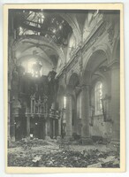 Les orgues situés au dessus de l'entrée de l'Abbatiale endommagé lors de la libération 1918.Créateur : Photographies Touly,4, Cité Magenta, Paris XeDate : 1918/1919Type : Image, Image fixe, PhotographieMots‑clés : Destructions, Première Guerre mondiale, Vie religieuse, Dommages de guerre : 1918, photographies Touly, Carte postale allemande -