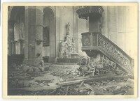 La chaire de l' Abbatiale Saint-Martin endommagée lors de la libération 1918.Créateur : Photographies Touly,4, Cité Magenta, Paris XeDate : 1918/1919Type : Image, Image fixe, PhotographieMots‑clés : Destructions, Première Guerre mondiale, Vie religieuse, Dommages de guerre : 1918, photographies Touly, Carte postale allemande -