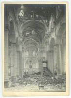 Les colonnades de l' Abbatiale Saint-Martin endommagées lors de la libération 1918.Créateur : Photographies Touly,4, Cité Magenta, Paris XeDate : 1918/1919Type : Image, Image fixe, PhotographieMots‑clés : Destructions, Première Guerre mondiale, Vie religieuse, Dommages de guerre : 1918, photographies Touly, Carte postale allemande -
