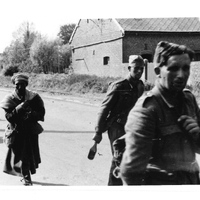Prisonnier maghrébin entouré de soldats allemands hilares en mai 1940