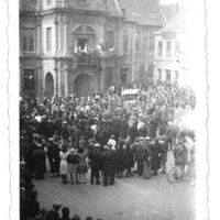Rassemblement à l'hôtel de ville lors de la libération du Cateau en 1944
