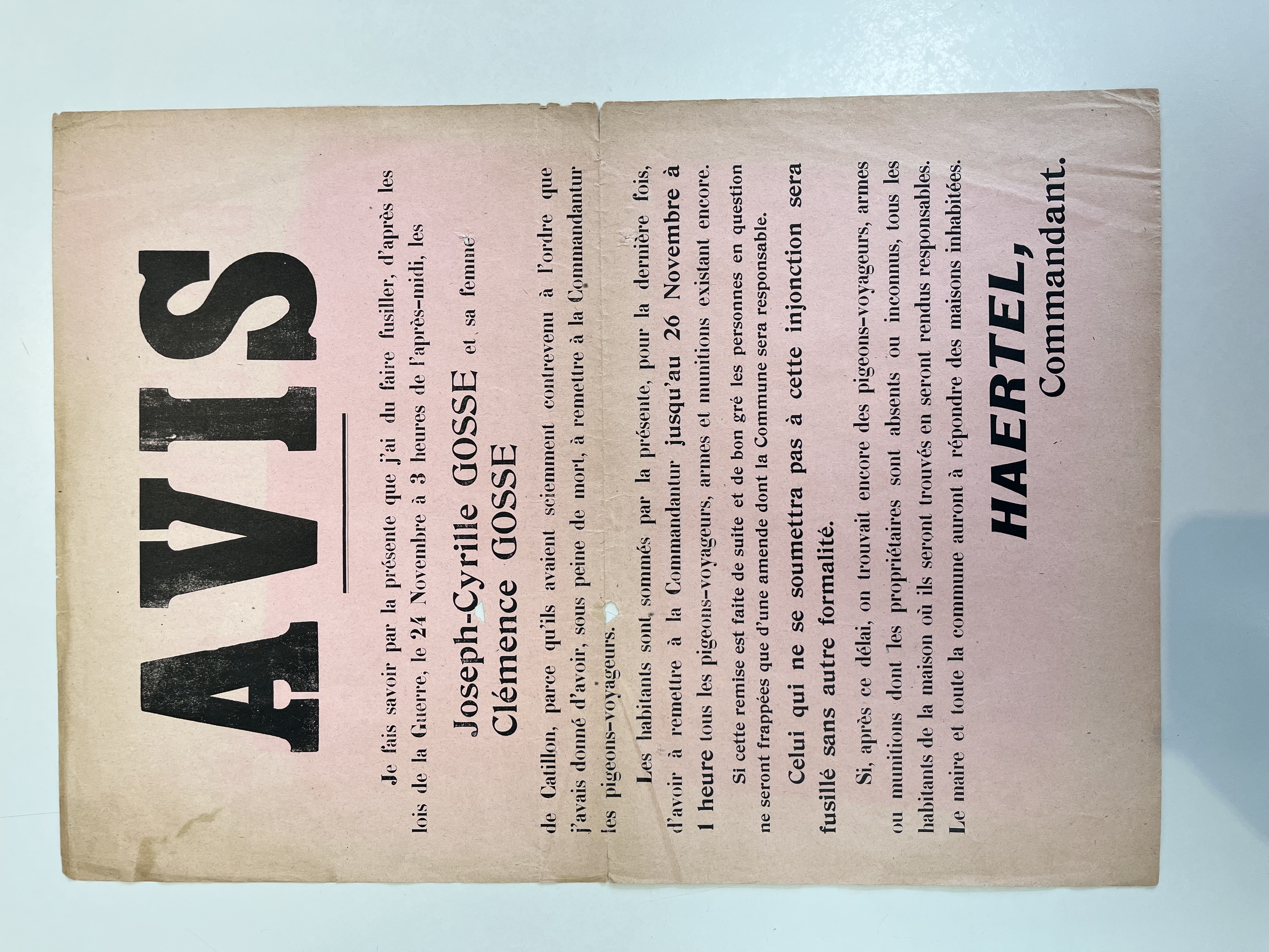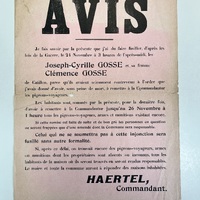 Avis d'exécution du 24 novembre 1914 de la famille Gosse