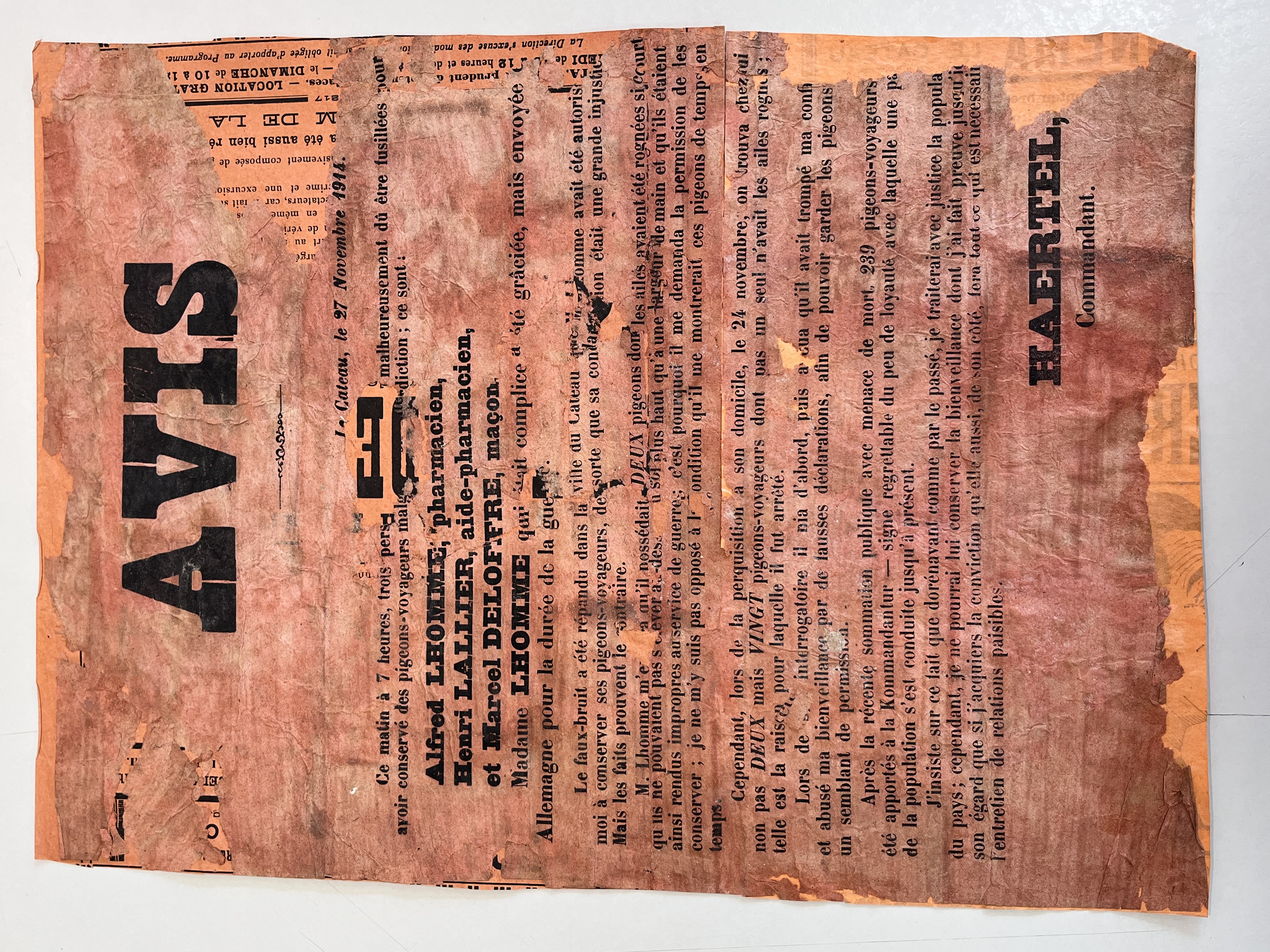 Avis d'exécution du 27 Novembre 1914