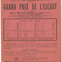 Affiche publicitaire du Grand prix de l'Escaut de 1933, sponsorié par la bière Baré au dos