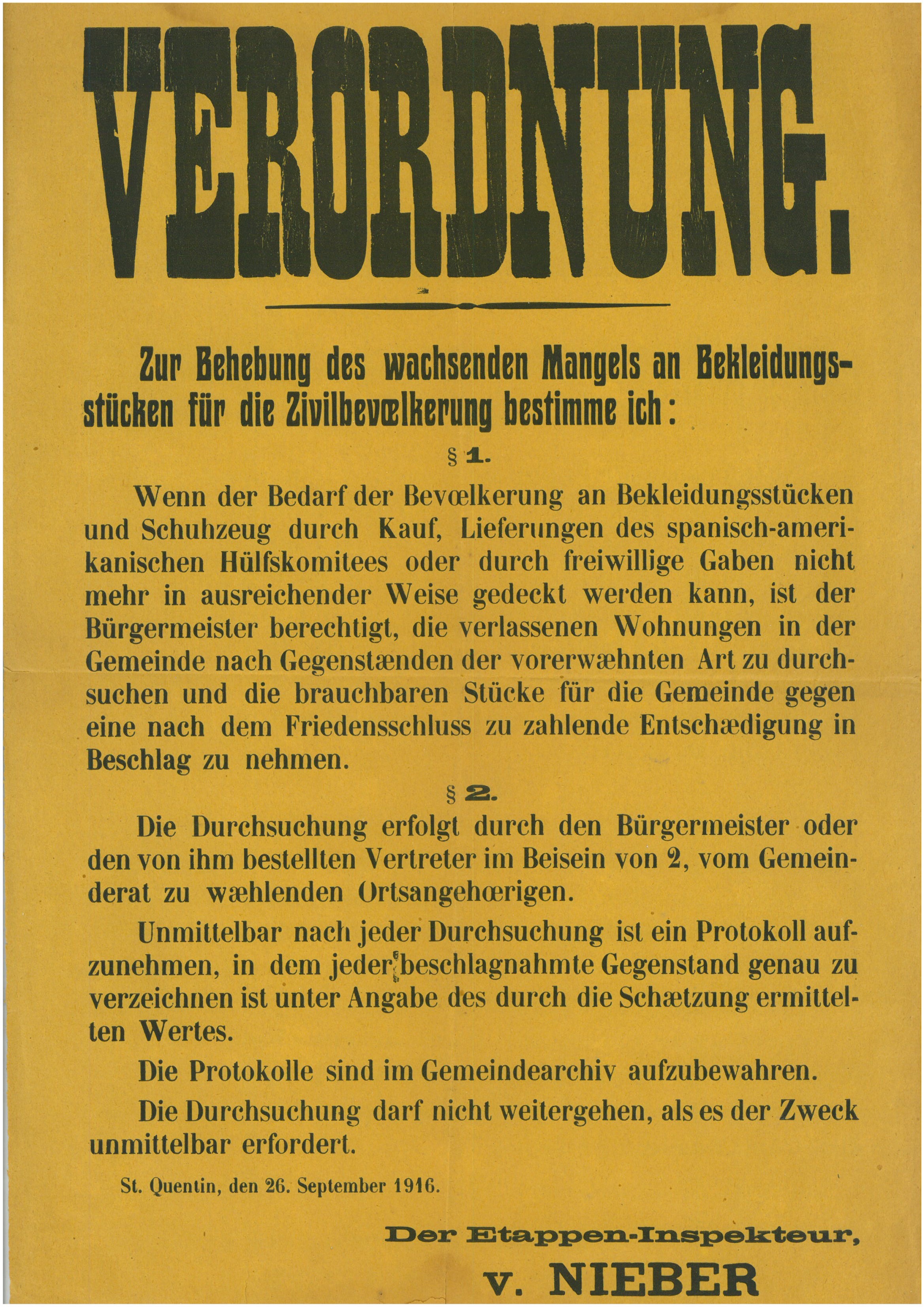 Ordre de la Kommandantur du 26 septembre 1916