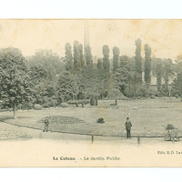L'entretien du jardin public avec l'ouvrier et un visiteur qui observe le parc.