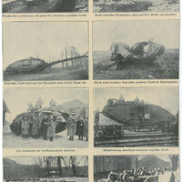Coupure de presse contenant 8 photographies de chars après la bataille de Cambrai en décembre 1917