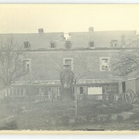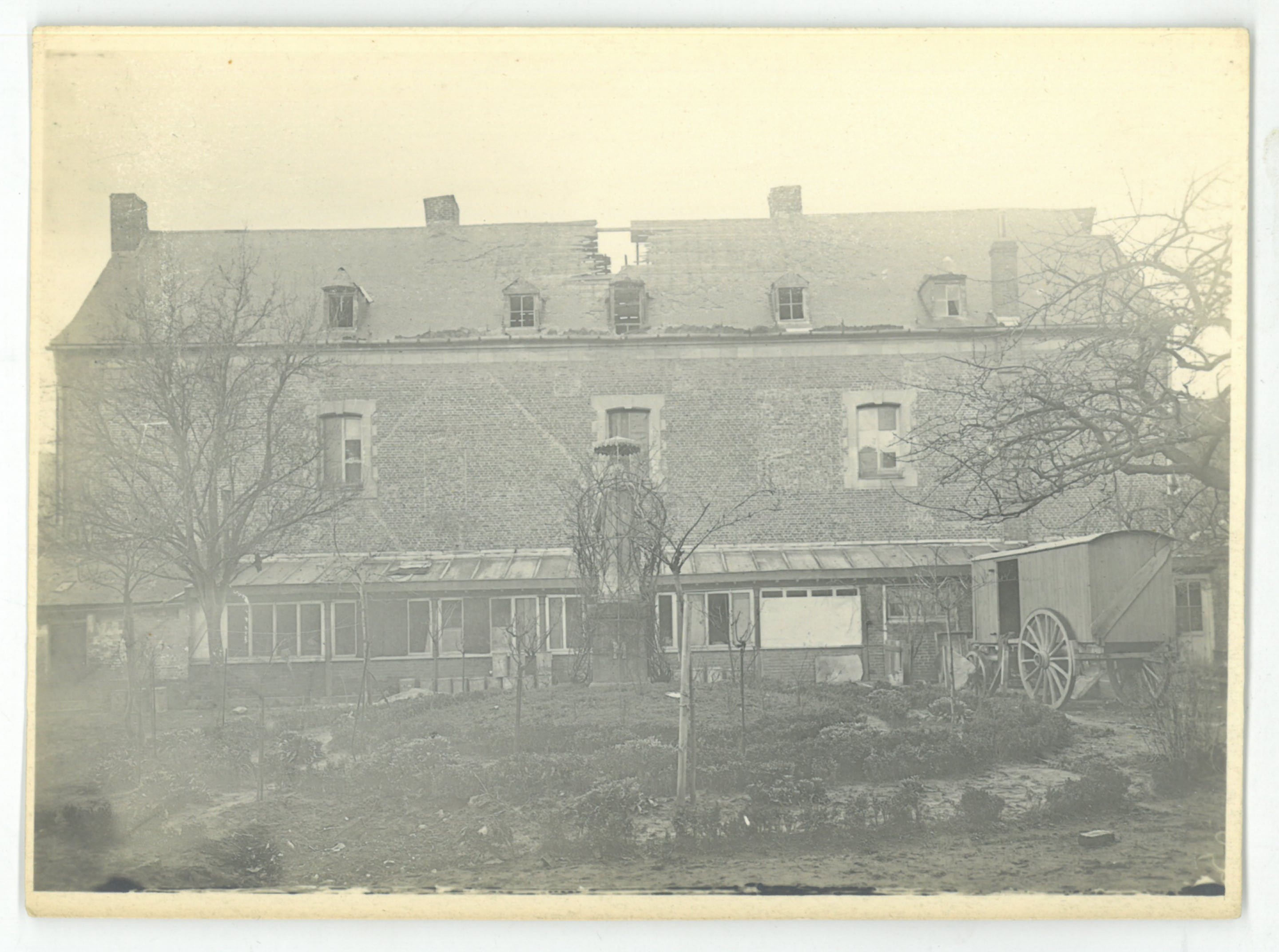 Façade sur jardin de l'asile des vieillards endommagée lors de la libération 1918.