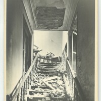 L'escalier qui donne au salon Mortier et à la salle municipal endommagé lors de la libération.