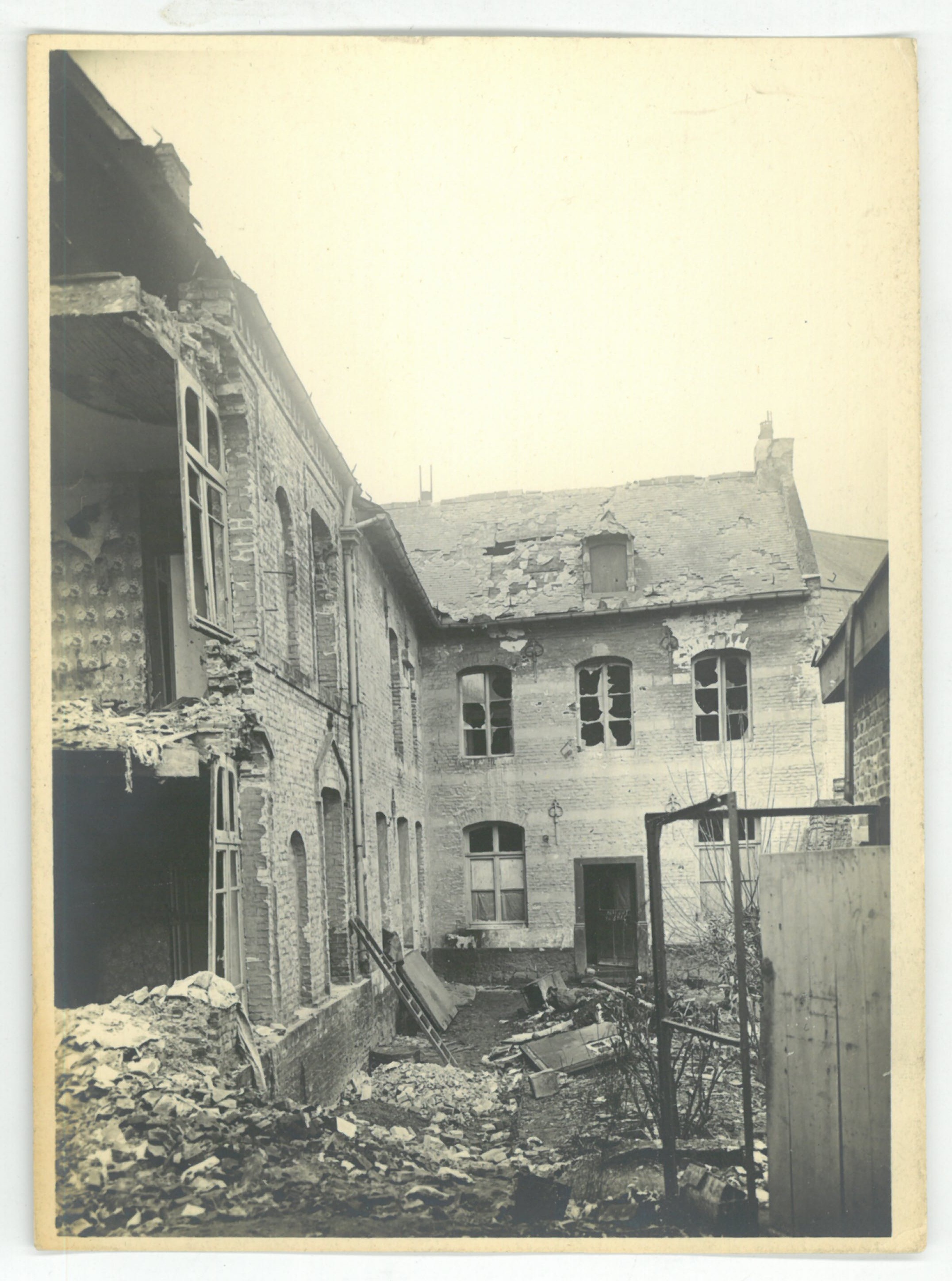Le Presbytère vue de la cour endommagé lors de la libération 1918.