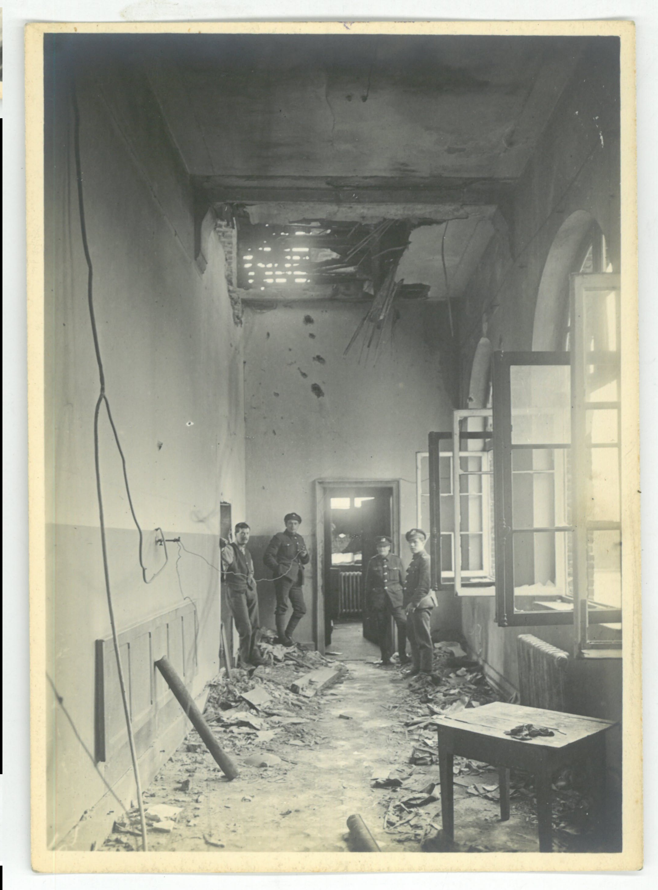 Le couloir de l' hôpital Paturle endommagé en 1918.