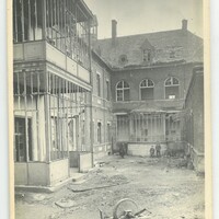 La cour extérieur avec au fond des enfants près de la verrière endommagée lors de la libération 1918.