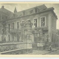L'entrée et la façade de l'école de garçons situé au collège endommagée lors de la libération 1918.
