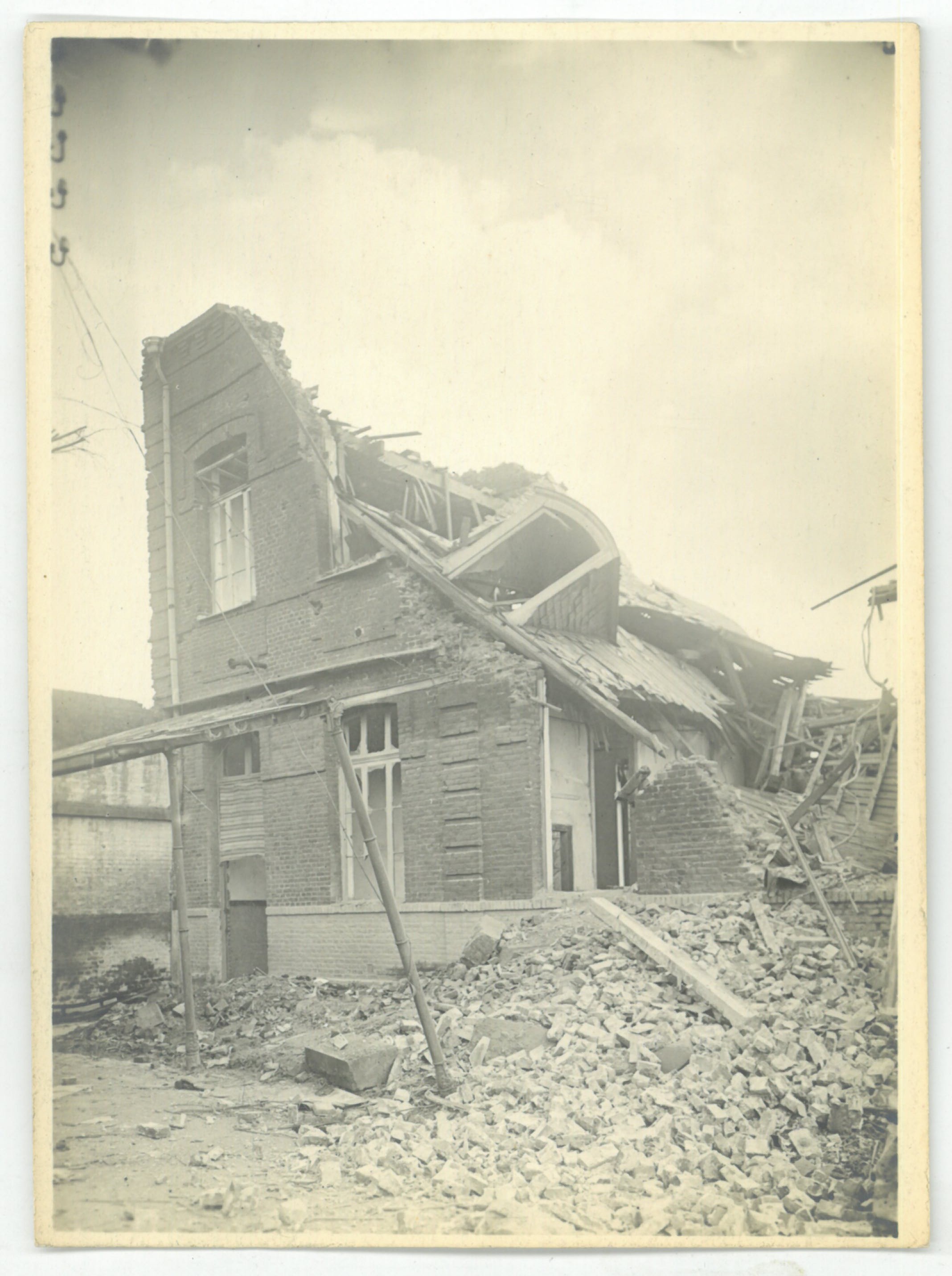 Une classe du collège endommagée lors de la libération 1918.